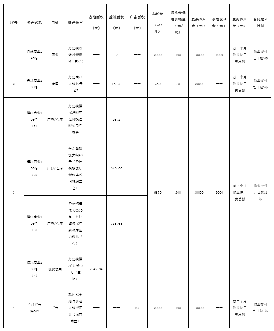 3.产权证照情况: 丹灶商业045号、丹灶商业045号、横江商业109号(4)、立柱广告牌003无产权证照,竞买人需自行承担相应风险;横江商业109号(1)房产证:粤房字第0097485号;横江商业109号(2)房产证:粤房字第0097483号;横江商业109号(3)房产证:粤房字第0097484号。