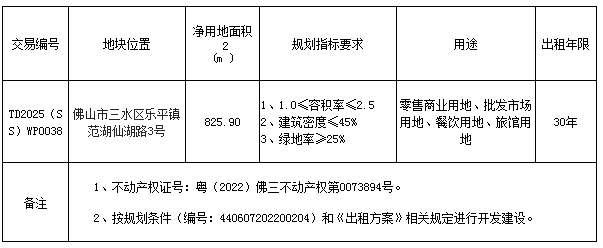 五、有意参与竞租者可于2025年7月10日后登录网上交易系统下载TD2025(SS)WP0038地块的《佛山市三水区国有划拨留用地使用权网上拍卖出租文件》。
