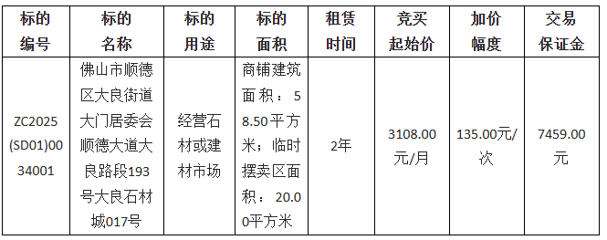 1.项目名称:佛山市顺德区大良街道大门居委会顺德大道大良路段193号大良石材城017号物业出租项目
