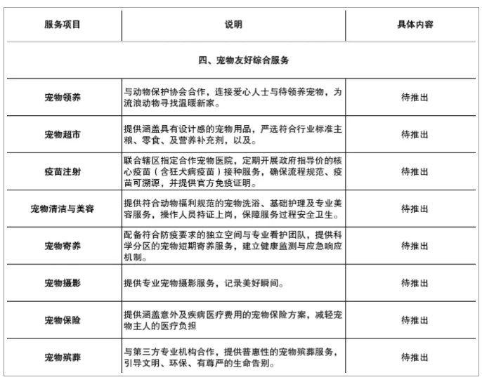 服务中心不仅关注宠物的出行与健康,更致力于构建全方位的宠物友好生态。未来,中心将整合疫苗、宠物保险、宠物领养,同时拓展服务边界,将服务延伸至宠物超市、清洁美容、寄养、摄影等品质服务领域。