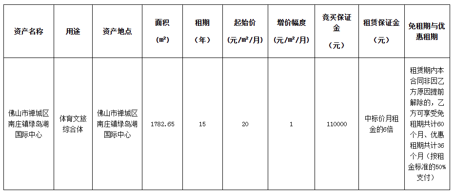 (2)承租方需在中标后签订合同之日起36个月内投入不低于¥10,000,000元或以上(含条件(1)加固修缮所需费用,不含租赁费用、宣传费等)用作租赁物业的加固修缮、建设、装修、设备投入等事宜。