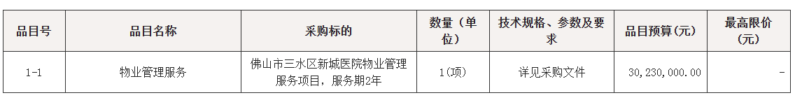 采购包1(佛山市三水区新城医院物业管理服务项目):