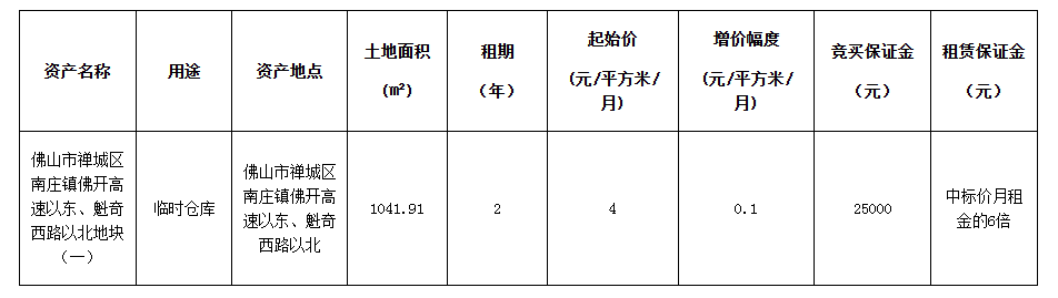 2.佛山市公共资源交易中心南海分中心通过佛山市资产交易网上交易系统及粤公平网站发布的项目信息(包括但不限于公告信息、交易文件、合同条款等)并不构成佛山市公共资源交易中心南海分中心对项目的任何交易建议。意向竞买人应不依赖于已披露的项目信息并自行对项目的相关情况进行必要的尽职调查和充分了解,对是否竞买该项目及项目成交后可能发生的费用和存在的风险自行作出充分评估,并独立承担所有风险。意向竞买人一经申请参加竞买,即视为知晓、认可项目现状,佛山市公共资源交易中心南海分中心对此不承担任何法律责任。
