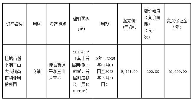 南海桂城街道平洲三山大夫祠商铺物业租赁项目