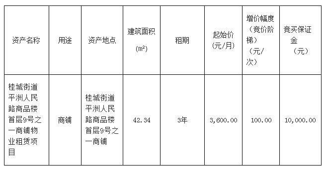 南海桂城街道平洲永安中路3号首层商铺之一物业租赁项目