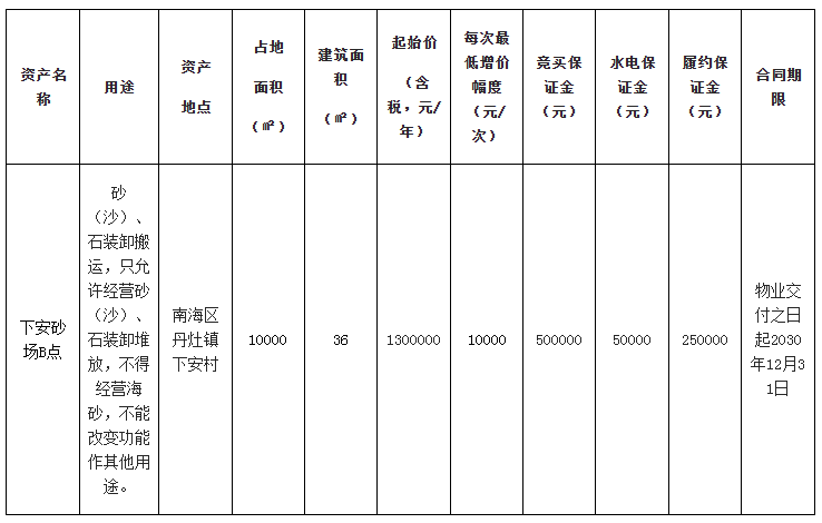 2.佛山市公共资源交易中心南海分中心通过佛山市资产交易网上交易系统及粤公平网站发布的项目信息(包括但不限于公告信息、交易文件、合同条款等)并不构成佛山市公共资源交易中心南海分中心对项目的任何交易建议。意向竞买人应不依赖于已披露的项目信息并自行对项目的相关情况进行必要的尽职调查和充分了解,对是否竞买该项目及项目成交后可能发生的费用和存在的风险自行作出充分评估,并独立承担所有风险。意向竞买人一经申请参加竞买,即视为知晓、认可项目现状,佛山市公共资源交易中心南海分中心对此不承担任何法律责任。