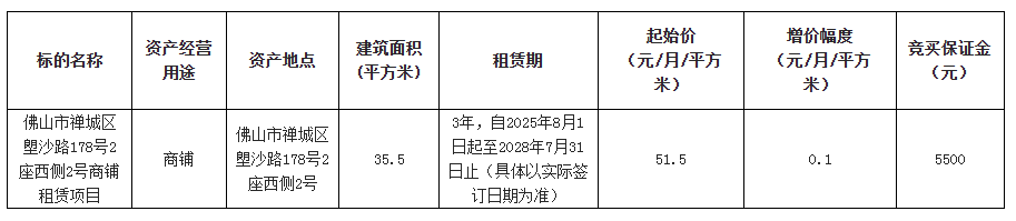 佛山市顺德区容桂街道红旗社区居委会红旗中路77号之一租赁权竞投