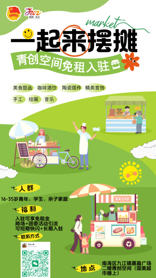 佛山市南海区九江镇嘉盈广场二楼青创空间现面向青年创业者开放免租入驻申请。该空间由九江镇团委联合嘉盈广场共同打造,总面积超2000平方米,规划为集潮创市集、美食营地、文化体验、儿童乐园于一体的多元化创业孵化平台,为青年创业者提供低成本创业环境。