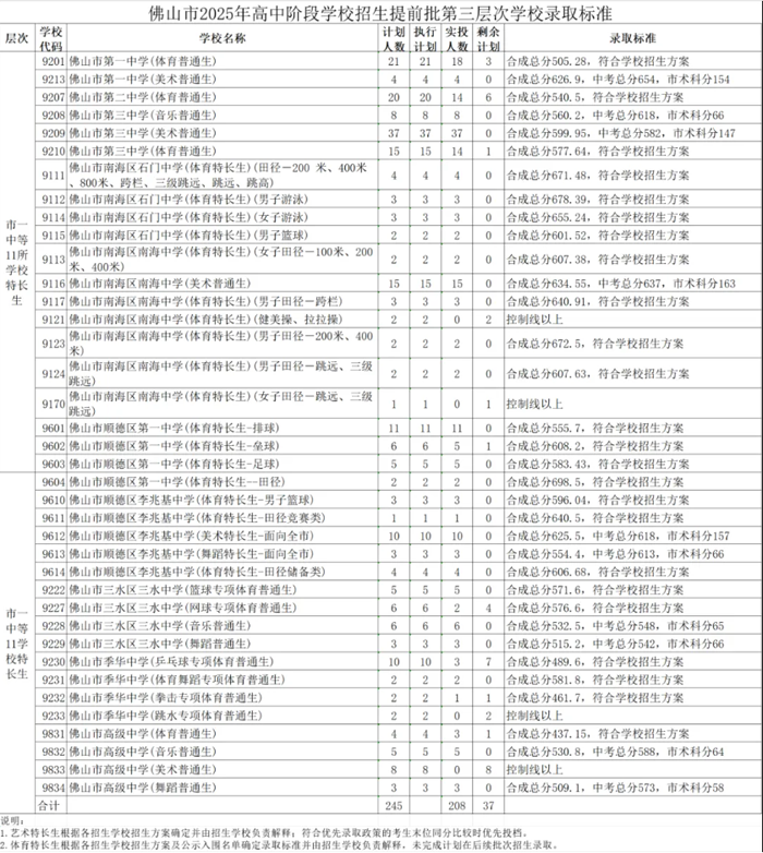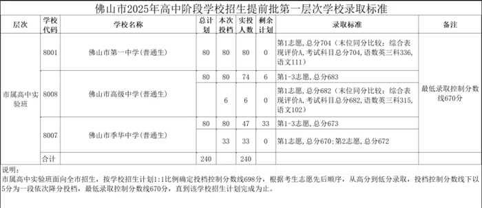 根据《佛山市教育局关于进一步推进我市高中阶段学校考试招生制度改革的实施意见》《佛山市2025年高中阶段学校招生考试工作意见》等文件精神,结合今年中考招生计划和考生成绩,设定——