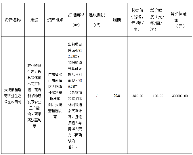 1.招租人:佛山市南海大沥土地整理有限公司