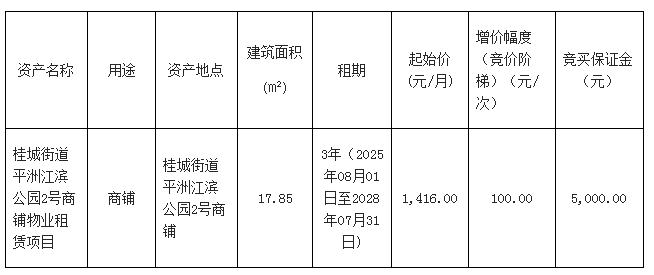 南海桂城街道平洲永安中路3号首层商铺之一物业租赁项目