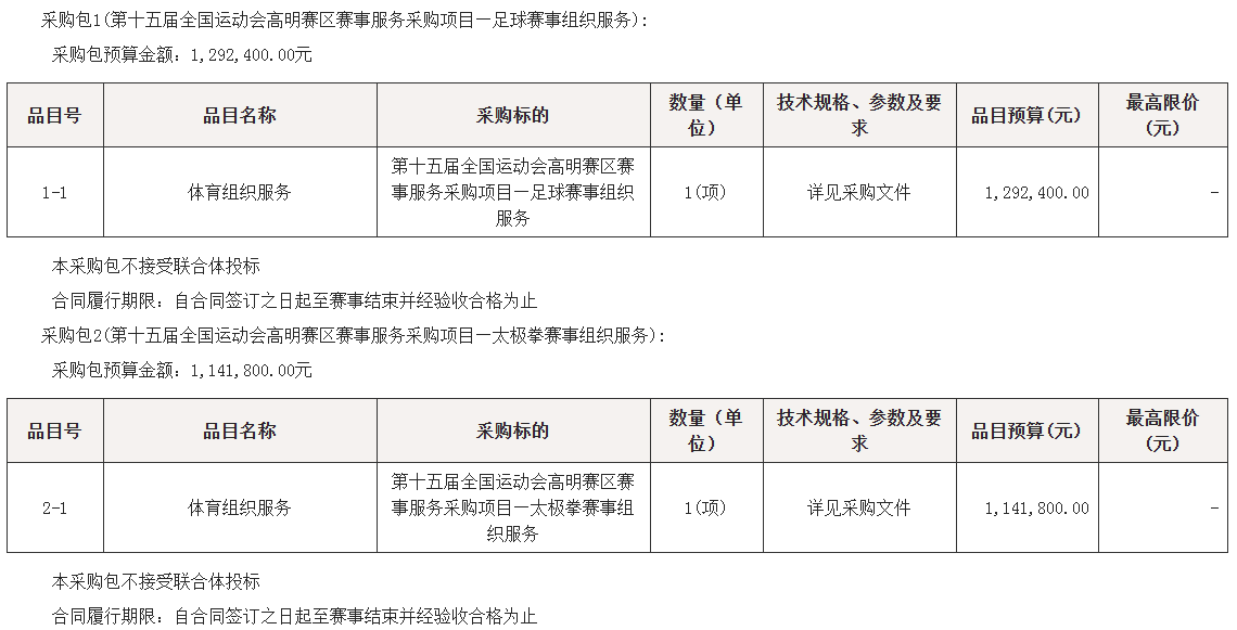 项目名称:第十五届全国运动会高明赛区赛事服务采购项目