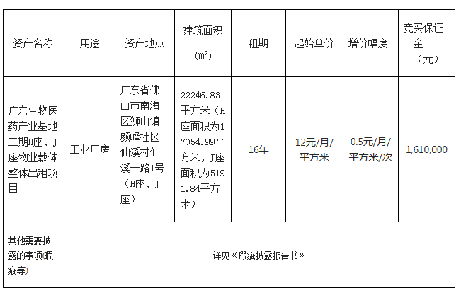 南海狮山镇广东生物医药产业基地二期H座、J座物业载体整体出租项目