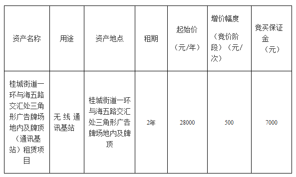 南海桂城街道一环与海五路交汇处三角形广告牌场地内及牌顶(通讯基站)租赁项目