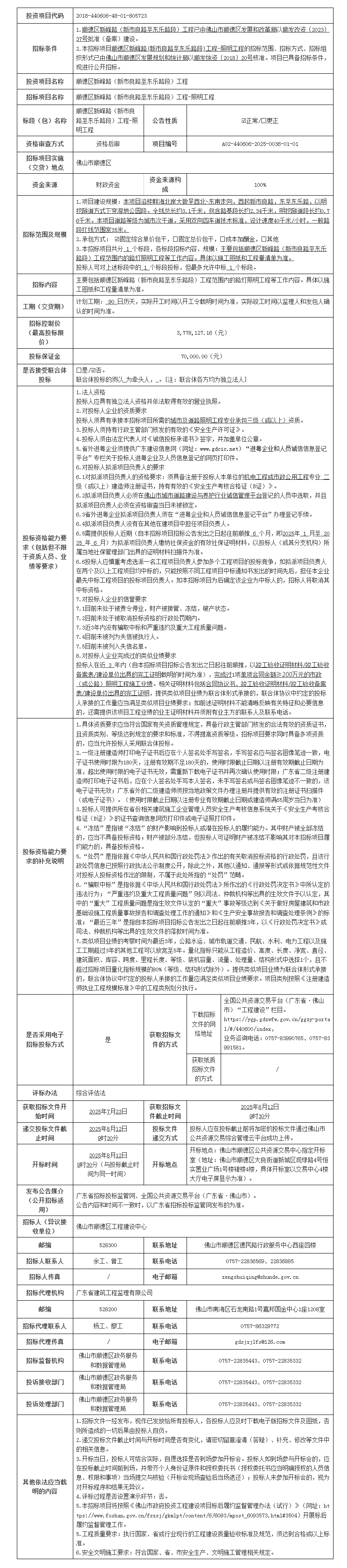 顺德区新峰路(新市良路至东乐路段)工程-照明工程招标公告