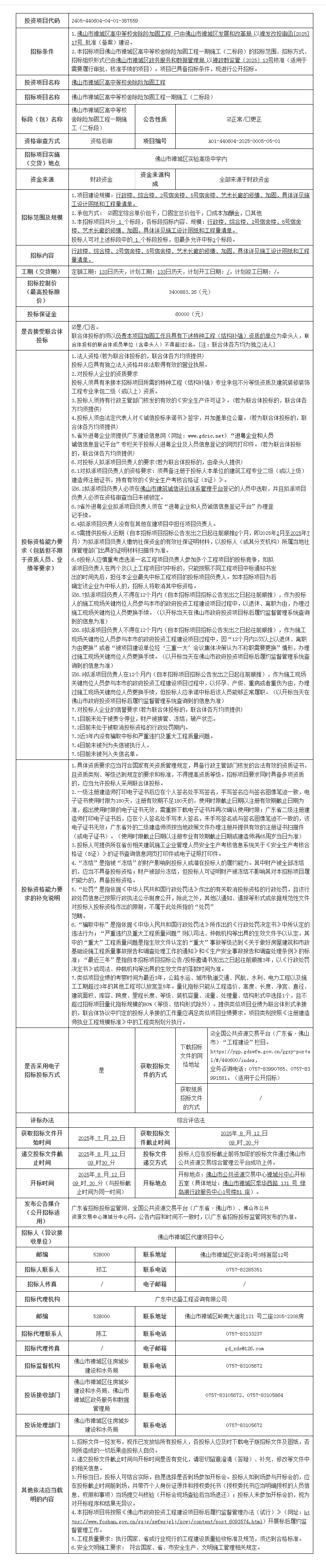 佛山市禅城区高中等校舍除险加固工程一期施工(二标段)招标公告