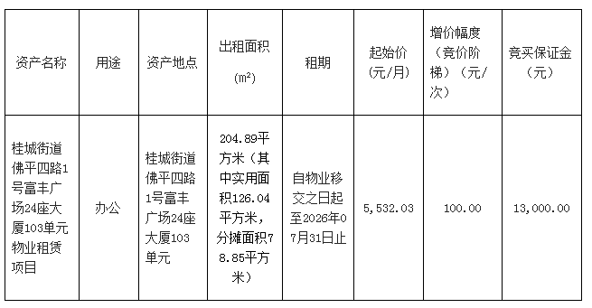 南海桂城街道佛平四路1号富丰广场24座大厦103单元物业租赁项目