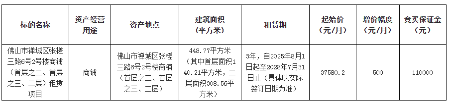 佛山市禅城区张槎三路6号2号楼商铺(首层之二、首层之三、二层)租赁项目