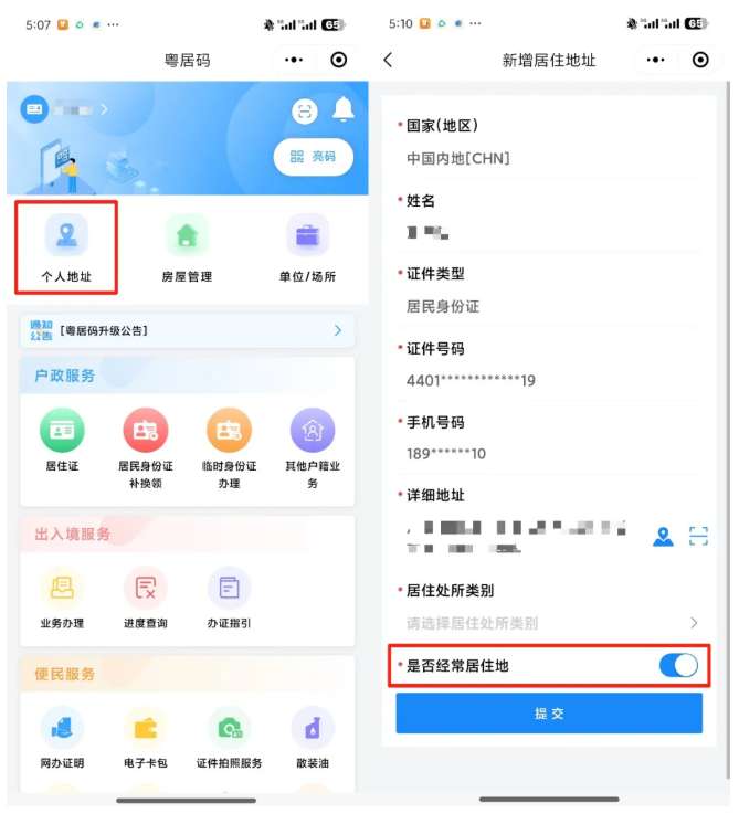 需要变更本市经常居住地的,参照上述方式进行操作。粤居码可以登记多个“有效”在住地址,但只有选择“经常居住地”状态的地址才被确认为完成居住登记。