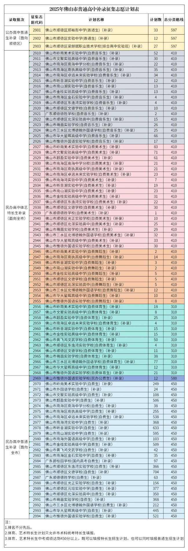 公、民办普通高中各类计划统一纳入佛山市中考信息管理系统管理,依据缺额计划安排补录计划并予以公布,面向符合条件的考生统一征集志愿。