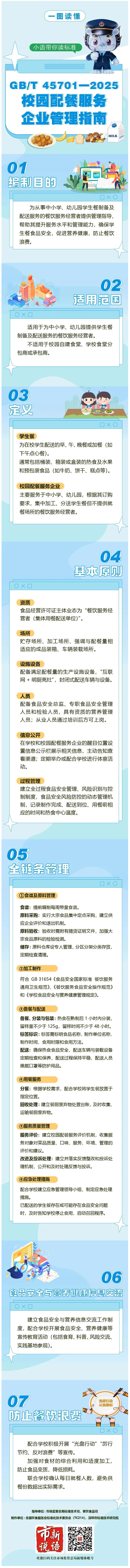 近日,市场监管总局批准发布《校园配餐服务企业管理指南》国家标准,持续完善校园食品安全监管体系。该标准适用于为中小学、幼儿园学生提供学生餐制作及配送服务的校园配餐服务企业,是校园配餐服务管理首个国家标准。