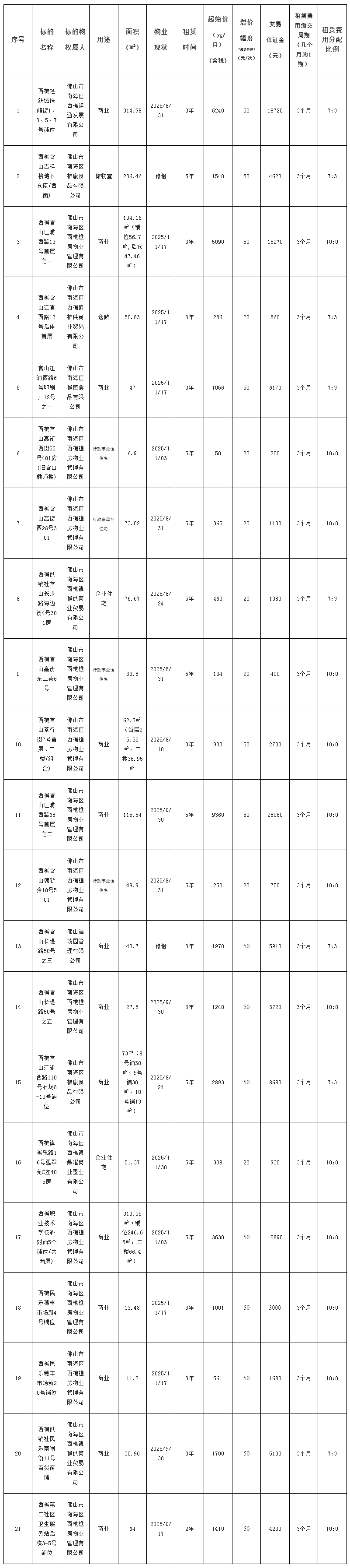 5.上述物业均按现状招租。表内面积数据仅供参考,以实际交付面积为准,不影响租赁费用标准。