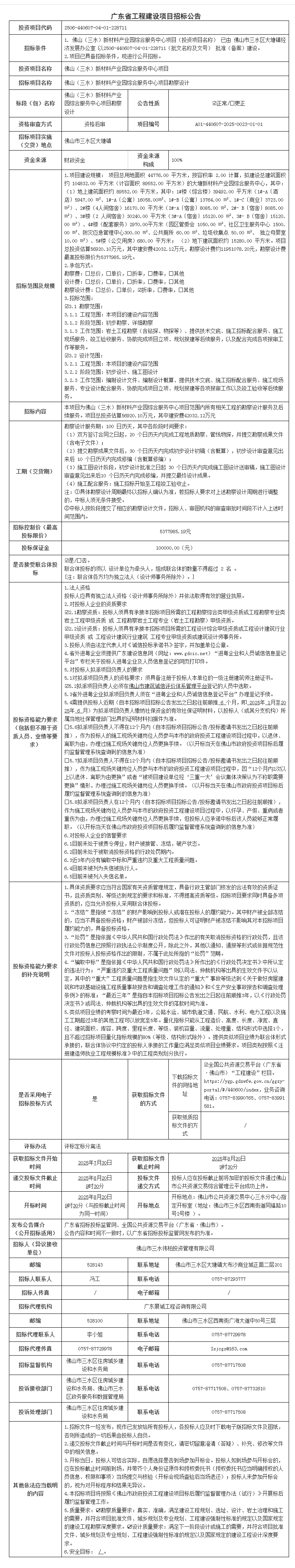 佛山(三水)新材料产业园综合服务中心项目勘察设计招标公告