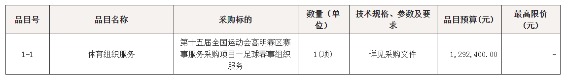 采购包1(第十五届全国运动会高明赛区赛事服务采购项目—足球赛事组织服务):
