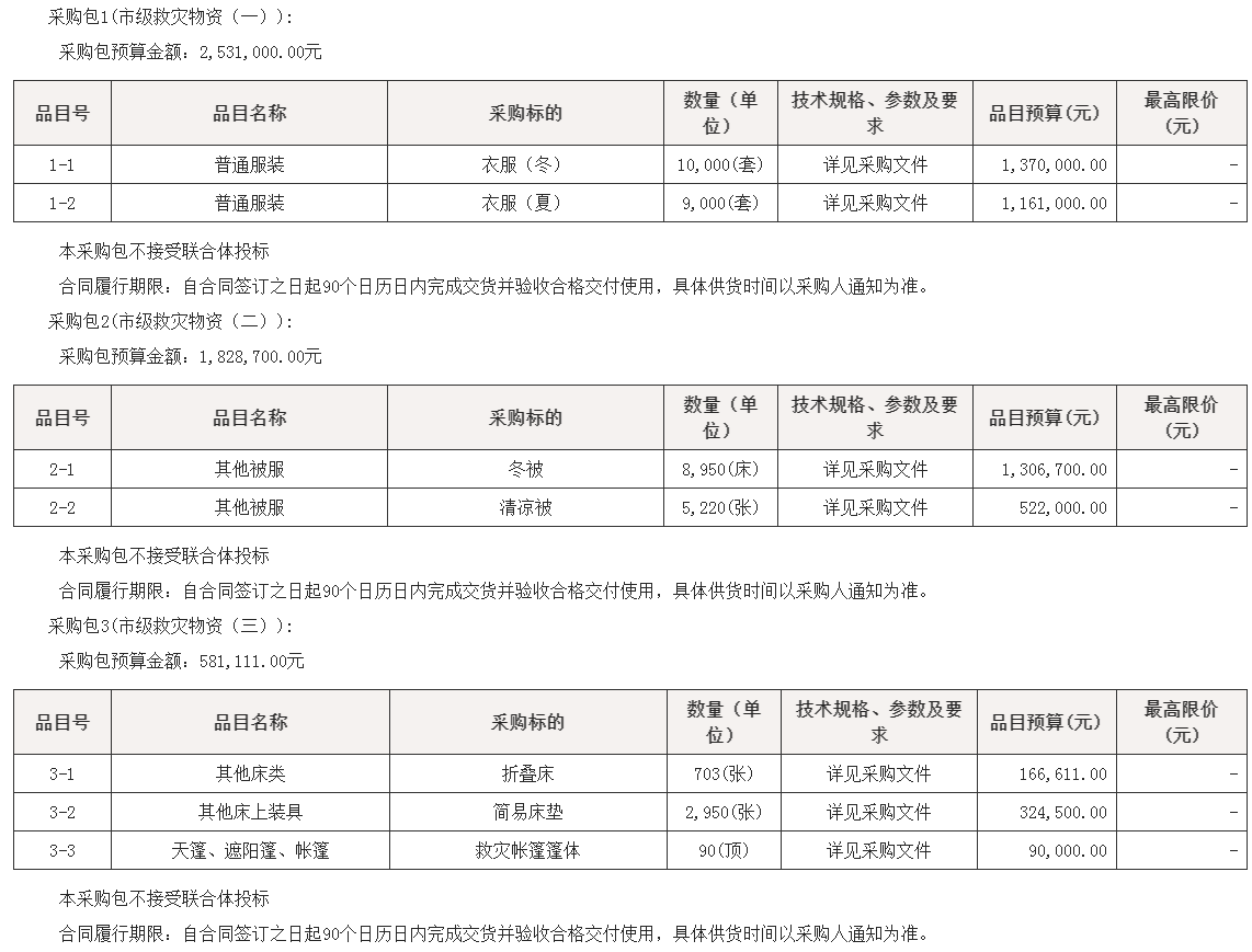 采购包3(市级救灾物资(三))特定资格要求如下: