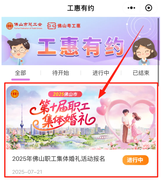 ①报名参加的新人其中一方须在佛山市内工作,并已加入工会组织;