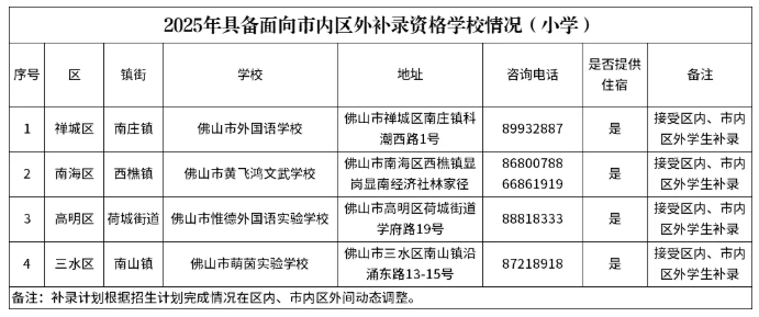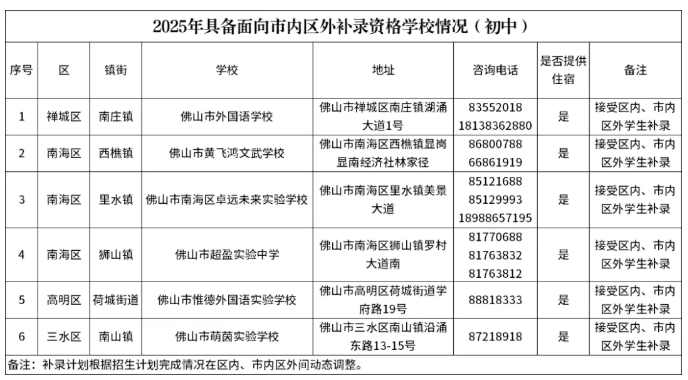 部分由市教育行政部门审批且具有住宿条件的学校,在经过区内补录后,仍有部分学位。即日起,符合我市民办义务教育学校报名条件且未被任何民办义务教育学校录取,有意愿报读的学生,可以主动联系学校申请补录。具体学校名单如下:
