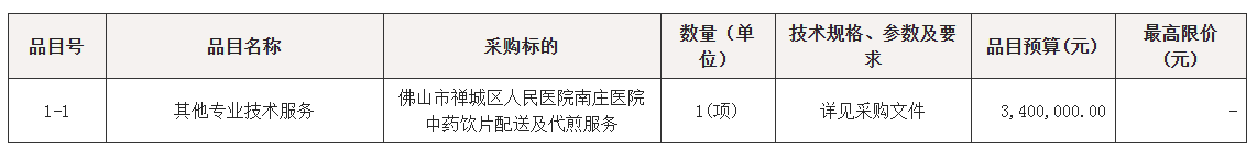 项目名称:佛山市禅城区人民医院南庄医院中药饮片配送及代煎服务