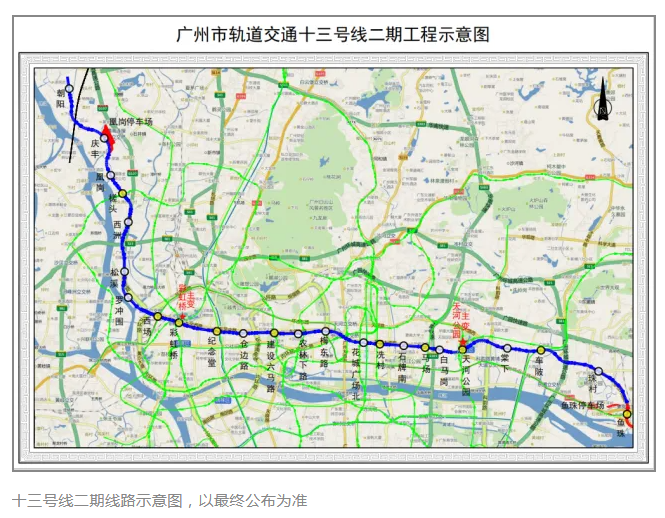 据广州地铁集团宣传部温美春介绍,地铁十三号线二期(朝阳-鱼珠)呈东西走向,线路串联白云、荔湾、越秀、天河、黄埔五大行政区,全长约34公里,设23座车站。线路建成开通后,将与十三号线一期(鱼珠-新沙)共同构建城市东西向骨干线,能有效疏导五号线客流压力,提高东西部客流直达市中心的便捷性,优化轨道网络运营服务水平。