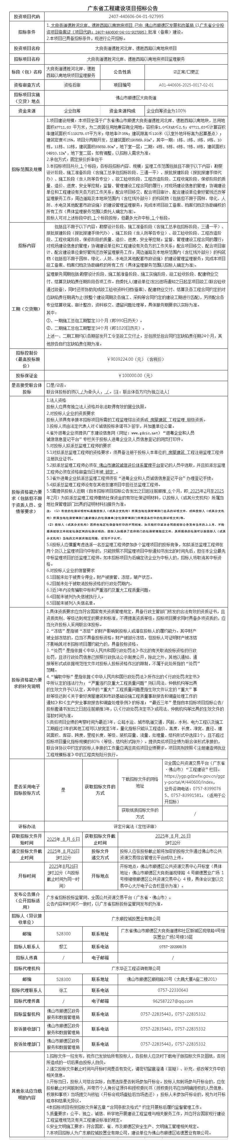 佛山市智慧渔政综合管理系统采购项目的潜在供应商应在广东省政府采购网https://gdgpo.czt.gd.gov.cn/获取采购文件,并于 2025年08月18日 09时00分 (北京时间)前提交响应文件。