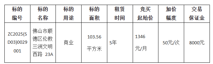 1.项目名称:佛山市顺德区伦教三洲文明西路 23A公有物业公开招租项目