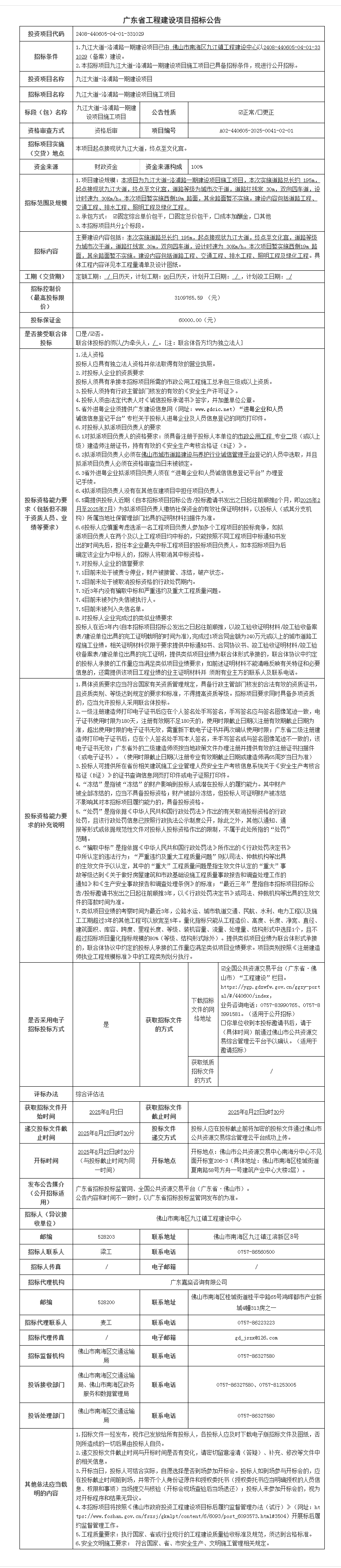 南海九江大道-洛浦路一期建设项目施工项目招标公告