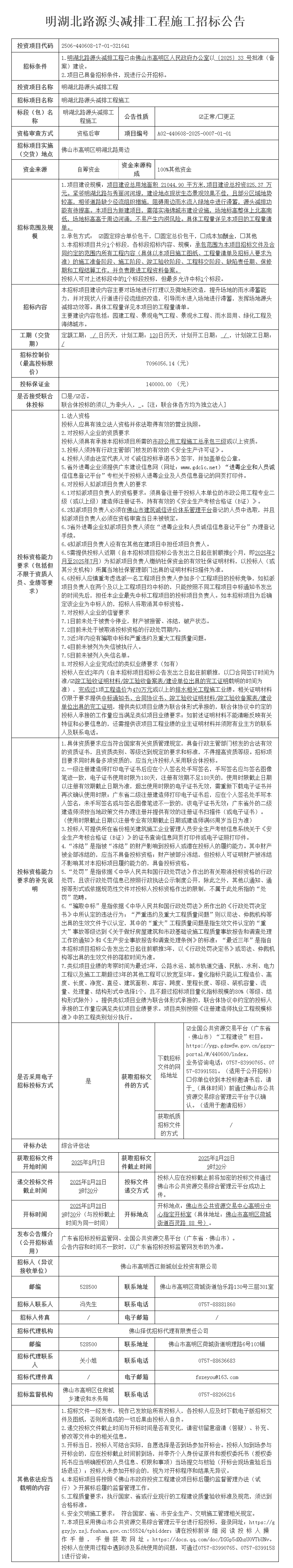 概述:1.明湖北路源头减排工程已由佛山市高明区人民政府办公室以〔2025〕33 号批准(备案)建设。2.项目已具备招标条件,现进行公开招标。......