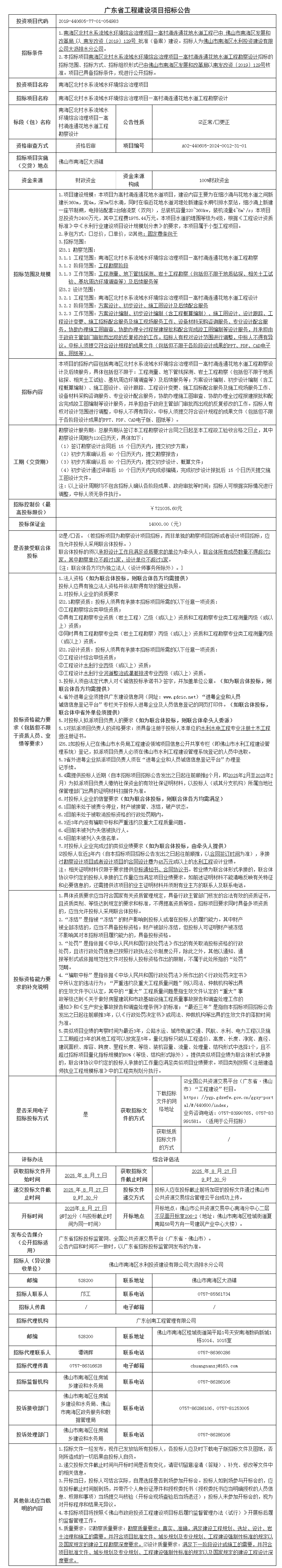 南海区北村水系流域水环境综合治理项目西南涌岸线整治和配套工程(狮山镇)勘察设计招标公告