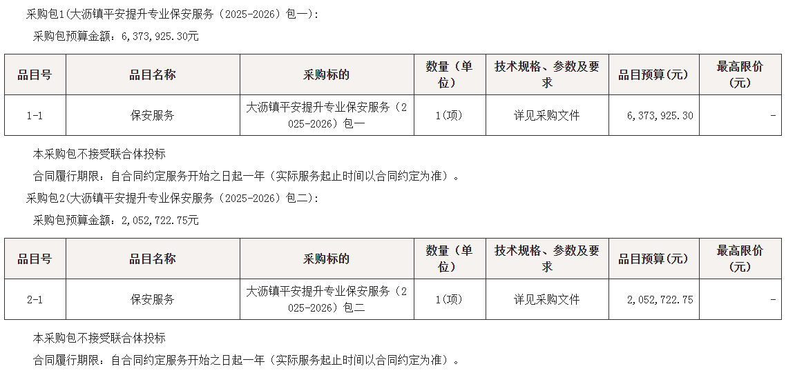 大沥镇平安提升专业保安服务(2025-2026)(二次)招标项目的潜在投标人应在广东省政府采购网https://gdgpo.czt.gd.gov.cn/获取招标文件,并于 2025年08月29日 09时00分 (北京时间)前递交投标文件。