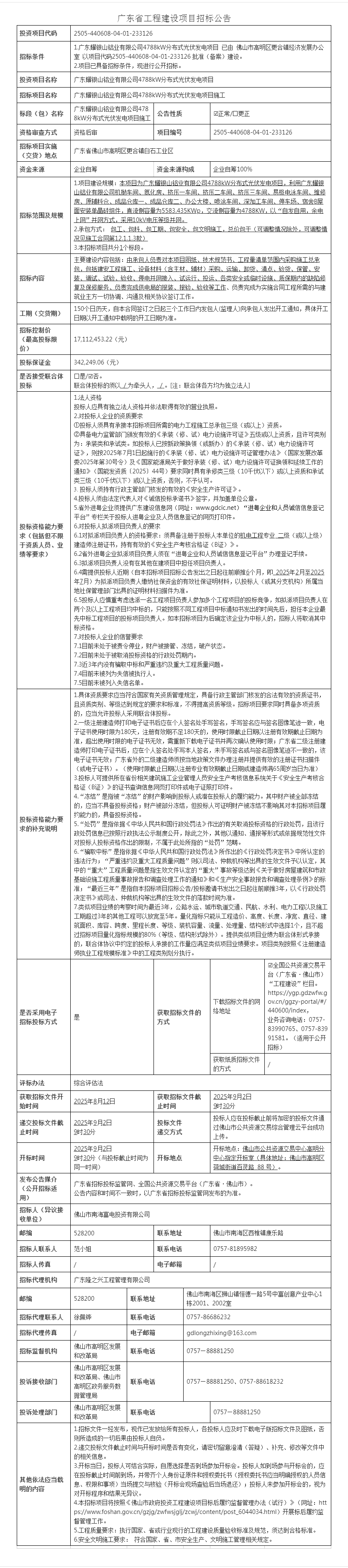 广东耀银山铝业有限公司4788kW分布式光伏发电项目施工招标公告