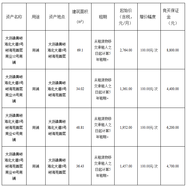 南海大沥镇黄岐海北大道3号岐海苑首层商业63-64号商铺等四项物业出租项目