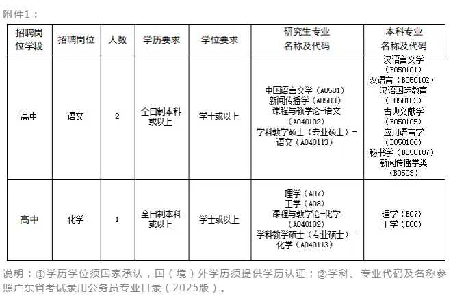 本次招聘临聘教师岗位3个(语文2、化学1),具体招聘岗位要求见《招聘岗位表》(附件1)。