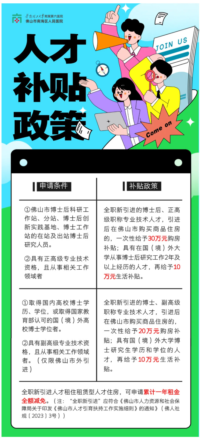 具有竞争力的薪资水平(基本工资+绩效工资+补贴等);购买五险一金,年度免费体检;具有竞争力的院内科教奖励;协助办理人才引进、入户;职称晋升渠道畅通,晋升后即可享受相应待遇;协助申请人才相关政府补贴: