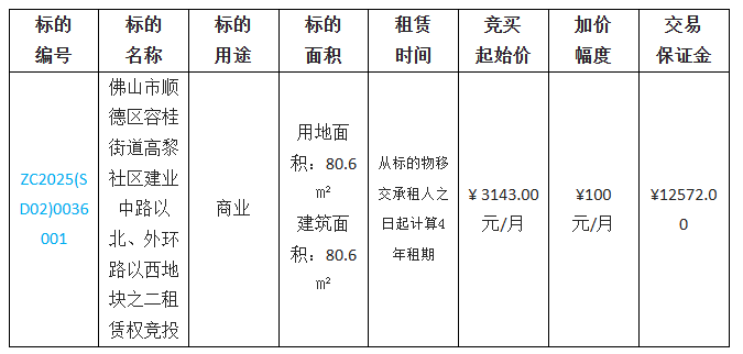 出租方采用网上竞价方式出租位于佛山市顺德区容桂街道高黎社区建业中路以北、外环路以西地块之二租赁权竞投,欢迎符合资格的竞买人参与竞价。