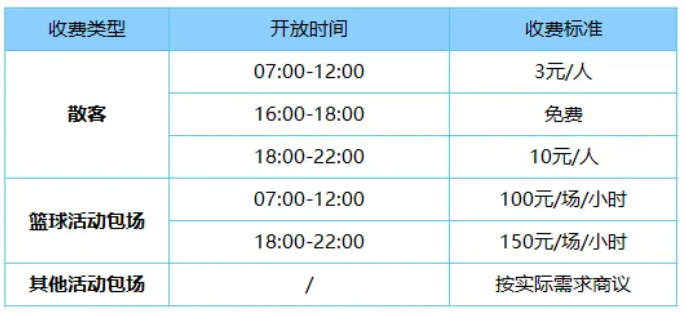 场地活动收费标准