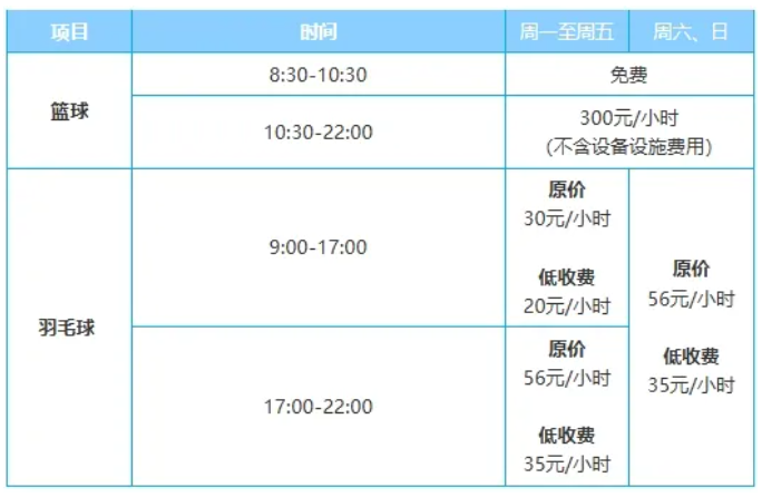 田径场低收费时段个人入场20元/人/次收费,团体入场另行协商。