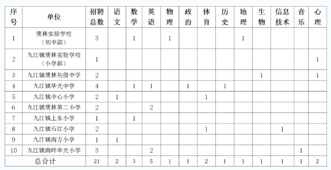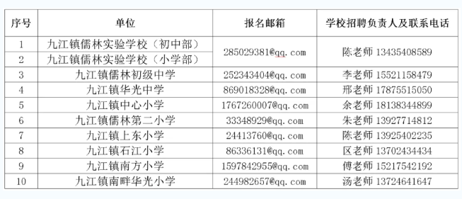备注:以上招聘对象不含九江镇各学校在职临聘教师。