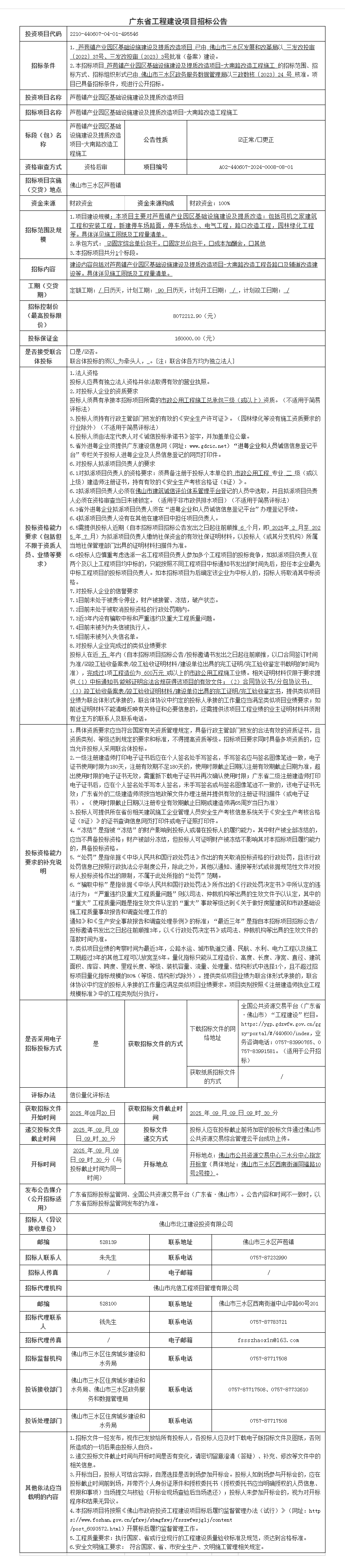 本招标项目 三山新城园区配套路网工程勘察设计 的招标范围、招标方式、招标组织形式已由佛山市南海区发展和改革局以南发改资桂字投审〔2025〕8号核准...[阅读全文]