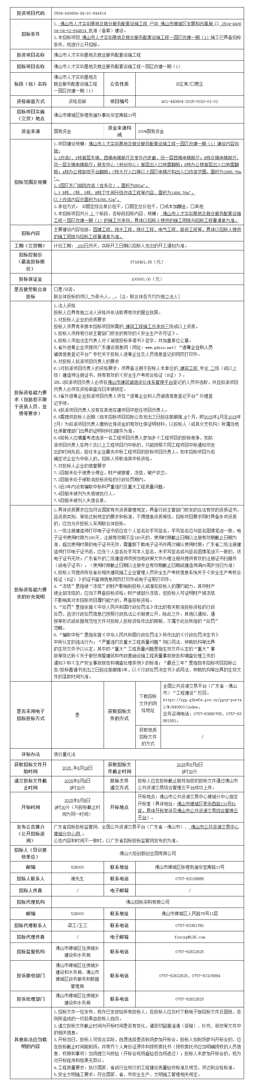 佛山市人才实训基地及就业服务配套设施工程—园区改建一期(1)招标公告