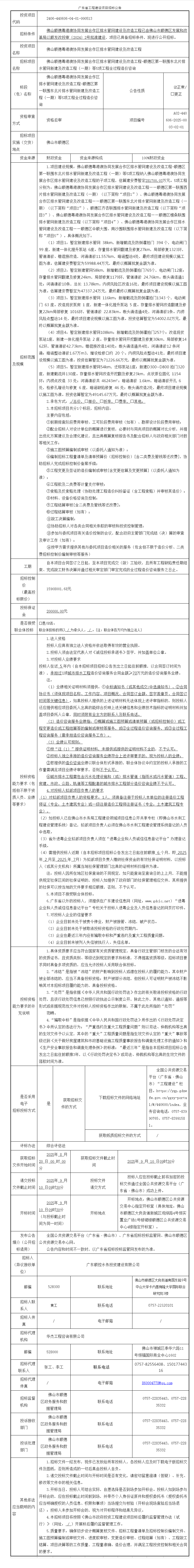 概述:佛山顺德粤港澳协同发展合作区排水管网建设及改造工程已由佛山市顺德区发展和改革局以顺发改投审〔2024〕2号批准建设,项目已具备招标条件,现进行公开招标。......